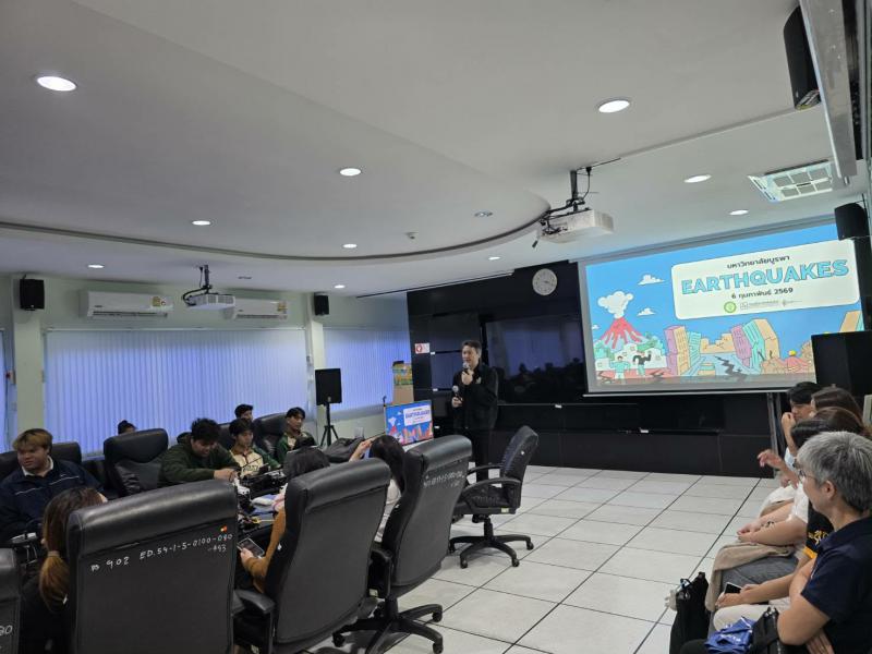 วันศุกร์ที่ 6 กุมภาพันธ์ 2569 เวลา 15.00-16.30น. นิสิตระดับปริญญาตรีชั้นปีที่3 จากมหาวิทยาลัยบูรพา จำนวน 38 คน เข้ารับฟังการบรรยายหัวข้อแผ่นดินไหวและสึนามิ บรรยายโดย นายบรรณศักดิ์ วรทอง นักอุตุนิยมวิทยาชำนาญการ ณ กองเฝ้าระวังแผ่นดินไหว กรมอุตุนิยมวิทยา