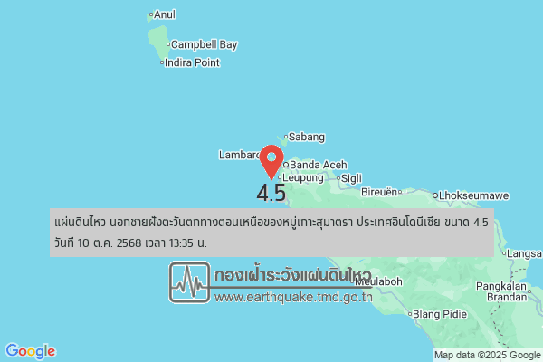 นอกชายฝั่งตะวันตกทางตอนเหนือของหมู่เกาะสุมาตรา ประเทศอินโดนีเซีย