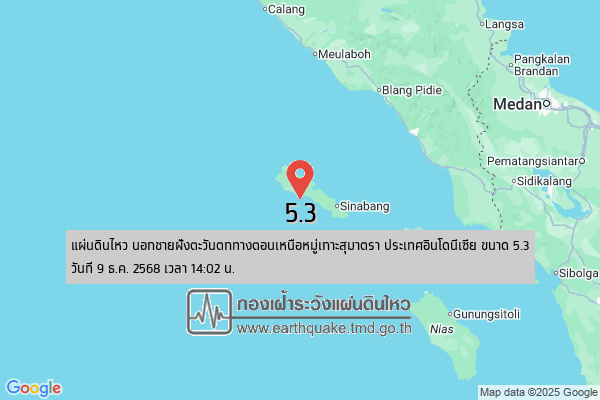 นอกชายฝั่งตะวันตกทางตอนเหนือหมู่เกาะสุมาตรา ประเทศอินโดนีเซีย